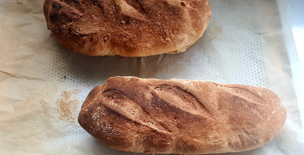 Dégazer les 2 boules en faisait pression avec la paume de votre main pour évacuer l'air. Ensuite, former 2 baguettes et faire quelques entailles sur le dessus. Laisser reposer encore une vingtaine de minutes avant d'enfourner à mi-hauteur entre 15 et 20 minutes à 220°C.